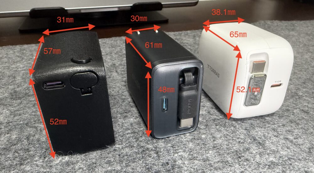 また、67Wの高出力モデルがあるため、出力の高いPC充電をする方はTORRASが選択肢となる。