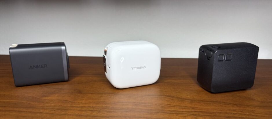 最近流行りのケーブルと充電器が1台に集約された、巻取り式USB-Cケーブル内蔵の充電器3種を紹介したい。